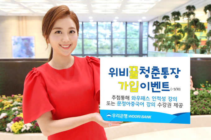 이번 이벤트는 오는 30일까지 위비꿀청춘 통장 가입 후 위비멤버스나 위비톡을 가입한 고객이라면 모두 자동 응모된다. 이 중에서 추첨을 통해 ▲13만원 상당 와우패스 인적성 온라인 강의 수강권 및 교재(90명) ▲17만원 상당 문정아 중국어 3개월 수강권(40명)을 제공한다.