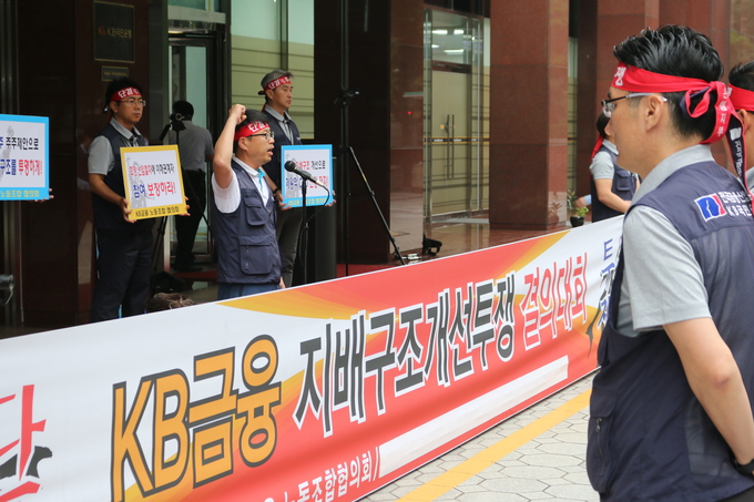 한편, ‘KB금융 노동조합협의회’(이하 KB노협)은 지난 7일 개최한 ‘KB 금융 지배구조개선 투쟁 결의대회’에서 윤종규 회장에 대한 연임 반대를 선언했다.