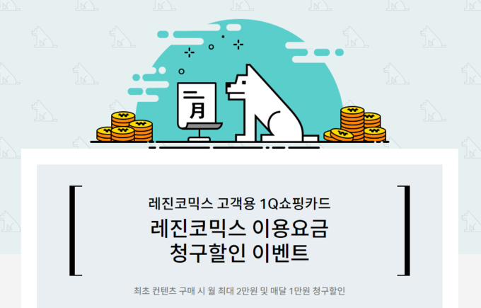 첫 결제 프로모션 이후에도 마트·관리비 등 전월 사용실적이 30만원 이상인 달에는 최대 1만원씩 총 12회까지 레진코믹스 결제액에 대한 청구할인 혜택을 제공한다.