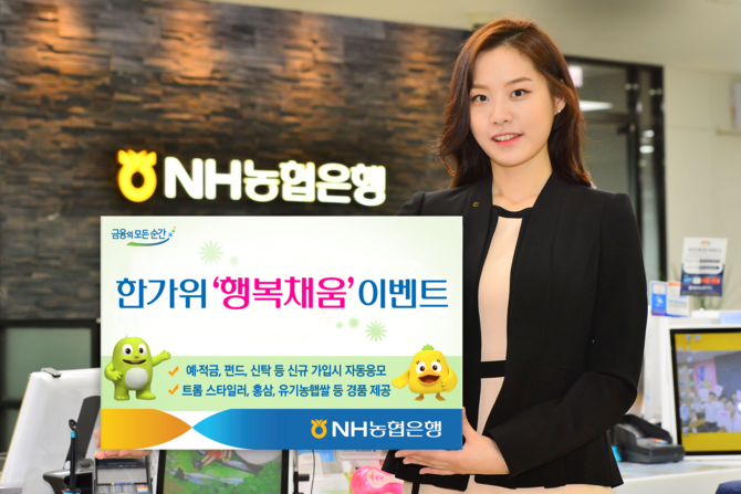 (조세금융신문=박소현 기자) NH농협은행은 오는 25일부터 내달까지 추석맞이 고객사은 행사인 ‘행복채움 이벤트’를 실시한다고 24일 밝혔다.
