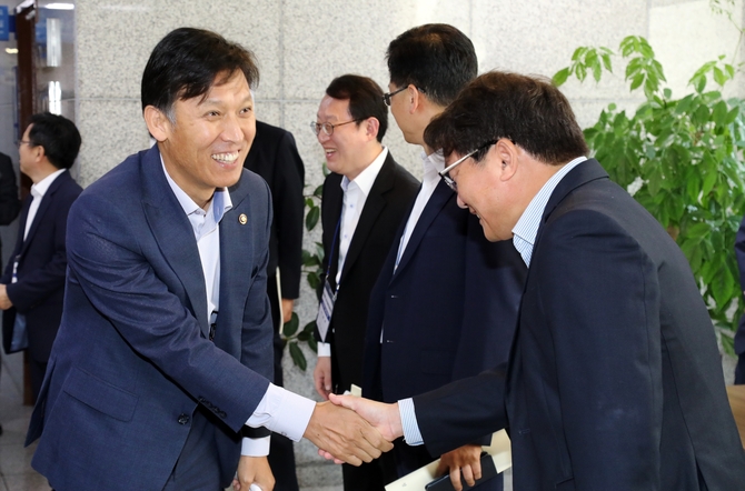 ![김영문 관세청장(왼쪽)이 전국세관장회의 참석자들과 인사를 하고 있다 [사진=관세청]](http://www.tfmedia.co.kr/data/photos/20171040/art_15072880499681_8f5529.jpg)