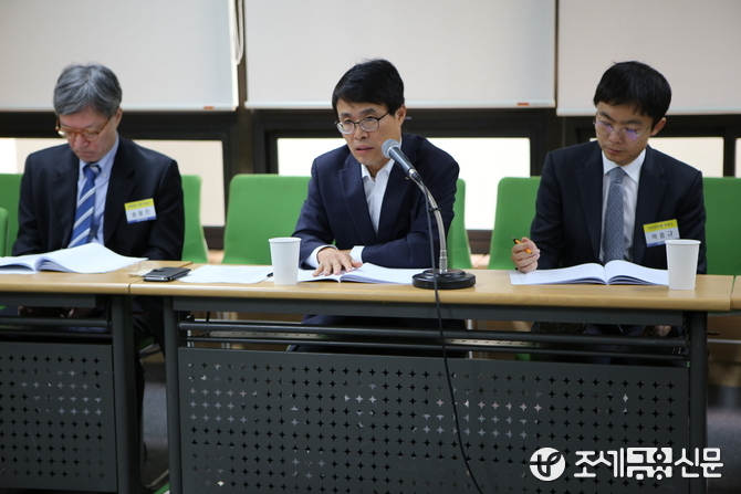 (조세금융신문=박소현 기자) 제75차 금융조세포럼에서 한국거래소 임재준 상무가 '소득세법상 파생상품 과세'를 주제로 발표한 손영철 세무사에게 질문하고 있다.