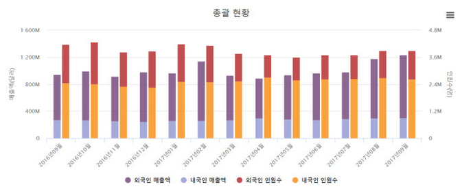 내·외국인 관광객을 끌어들이기 위한 대규모 할인 행사 등도 사상 최대 매출액에 달성에 기여했지만 이익률은 오히려 떨어지고 있어 업계의 한숨이 깊어지고 있다.