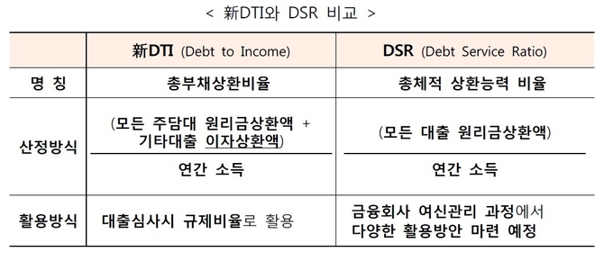 24일 기획재정부 등 관계기관 합동으로 발표한 ‘가계부채 종합대책’에 따르면 정부는 가계부채 연착륙 유도를 위해 DTI 개선‧DSR 정착 등 다양한 방안을 시도할 방침이다.
