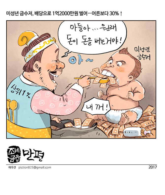 [조세금융만평]미성년 금수저 배당으로 1억2000만원 벌어…성인 보다 30%↑