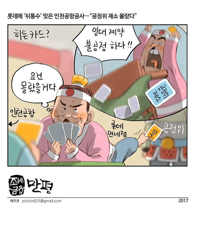 [조세금융만평]롯데에 ‘뒤통수’ 맞은 인천공항공사…“공정위 제소 몰랐다”