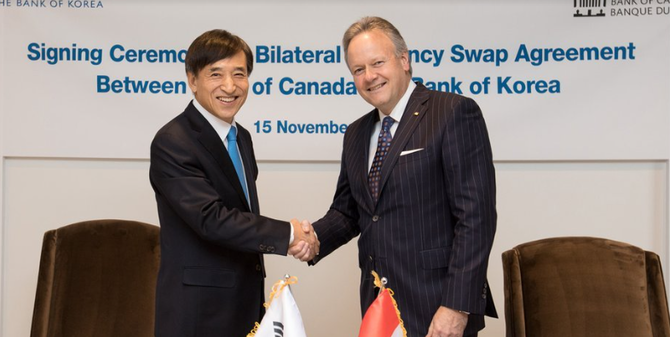 한국은행 이주열 총재는 "통화스와프 목적으로 금융안정을 확실히 못 박았으니 금융불안시 뒷받침해줄 테고, 기한이 없어서 만기 때마다 연장문제가 불거지는 일도 없다"며 "기축통화국인 캐나다가 한국 금융안정을 지원한다는 약속을 한 것"이라 이번 협약의 의의를 설명했다.