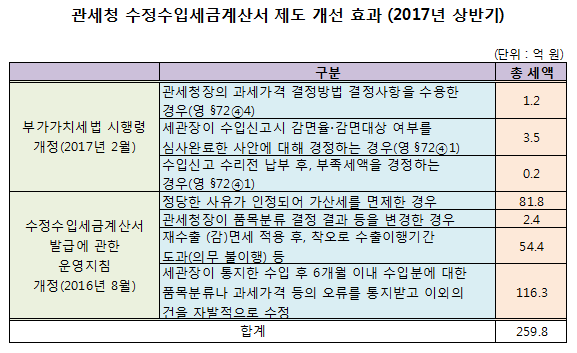 관세청에 따르면 이로 인해 올 상반기 권리구제만 260억원(연간 520억원)이 이뤄져 문제점이 상당히 개선됐다는 분석이다.