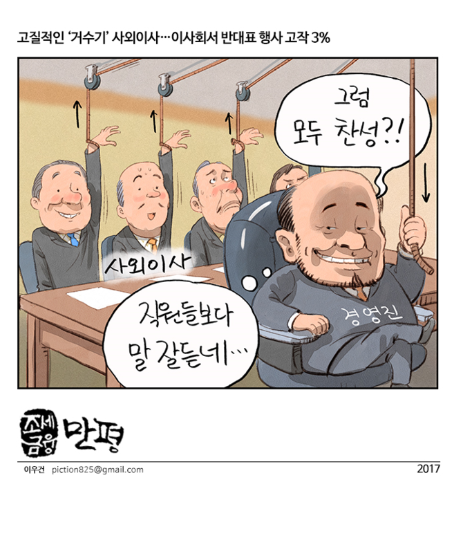 [조세금융만평]고질적인 ‘거수기’ 사외이사…이사회서 반대표 행사 고작 3%