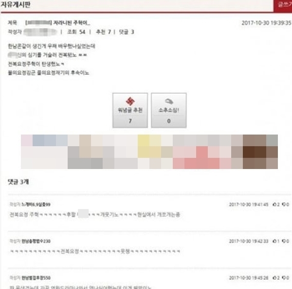 뿐만 아니라 "전복 요정", "벤츠 탔으니 김치남", "늙었으니 교통사고가 아닌 자연사"라며 심각한 수준의 폭언들이 오가고 있었다.