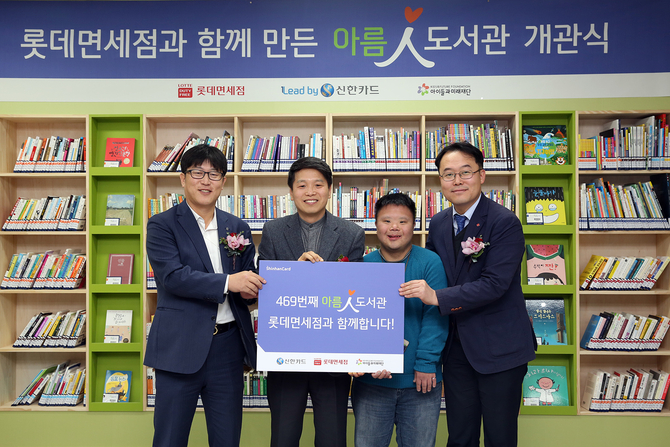 롯데면세점은 신한카드와 협약을 맺고 롯데면세점 전지점에서 적립된 ‘마이신한포인트’의 5%에 해당하는 금액을 ‘아름인 도서관 지원 사업’에 후원하고 있다. 이번 아름인 도서관 오픈은 2014년 제주도 첫 개관에 이어 네 번째다.