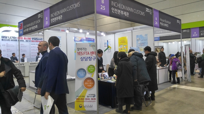 인천세관은 FTA·수출입 상담 전용 단독 부스를 개설하고 세관 실무자, 공익관세사가 행사장을 찾은 화장품 수출·제조기업 관계자를 대상으로 FTA 활용 상담을 진행하고 있다.