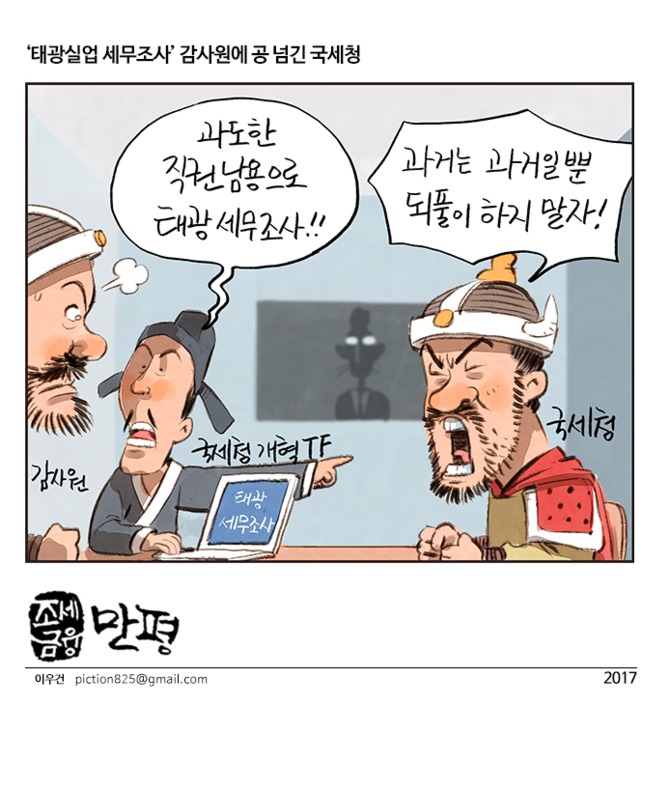 [조세금융만평]‘태광실업 세무조사’ 감사원에 공 넘긴 국세청