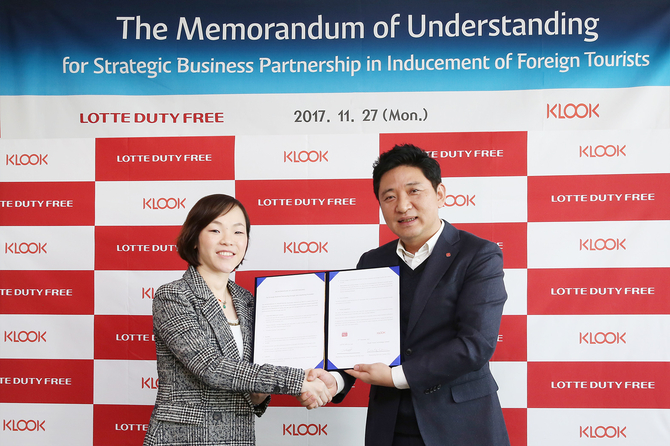 (조세금융신문=신경철 기자) 롯데면세점은 지난 27일 동남아 최대 규모의 온라인 여행 전문 예약 사이트인 클룩(KLOOK)사와 마케팅 고도화를 위한 업무협약(MOU)을 체결했다고 28일 밝혔다.