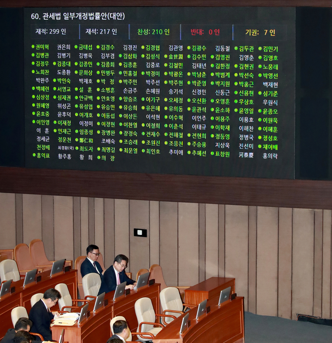 ![1일 오후 국회 본회의에서 예산부수법안인 관세법 개정안이 가결되고 있다 [사진=연합뉴스]](http://www.tfmedia.co.kr/data/photos/20171249/art_1512438511251_54ec0a.jpg)