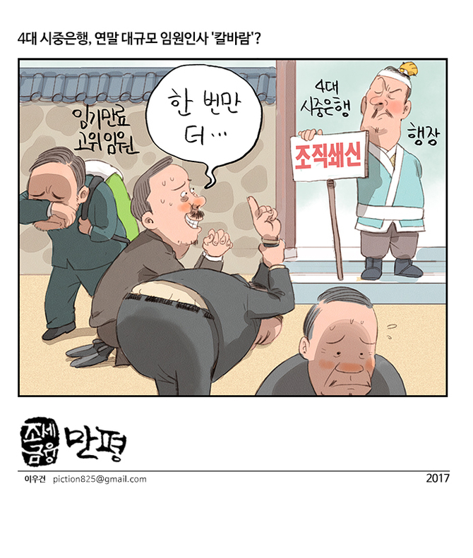 [조세금융만평]4대 시중은행, 연말 대규모 임원인사 '칼바람'?