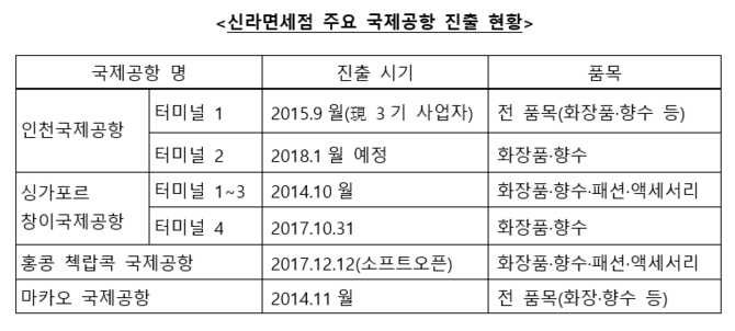 한편 신라면세점은 지난 2013년부터 싱가포르 창이국제공항 면세점, 마카오 국제공항 등 공항면세점을 중심으로 해외 면세점 운영을 시작한 이후 지난해 11월 태국 푸껫 시내면세점과 올해 4월 일본 도쿄 시내면세점을 차례로 오픈하면서 해외 시내면세점으로도 적극 진출중이다.