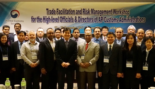 ![관세청이 이번 달 18일부터 20일까지 3일 간 인천 송도에서 아시아·태평양지역 11개국을 대상으로 개최하는 아태지역 무역원활화·위험관리 워크숍 참석자들이 기념촬영을 하고 있다 [사진=관세청]](http://www.tfmedia.co.kr/data/photos/20171251/art_1513642333545_08e194.jpg)