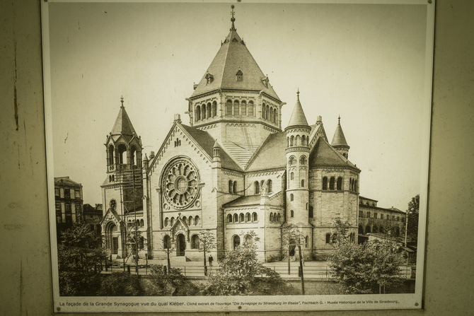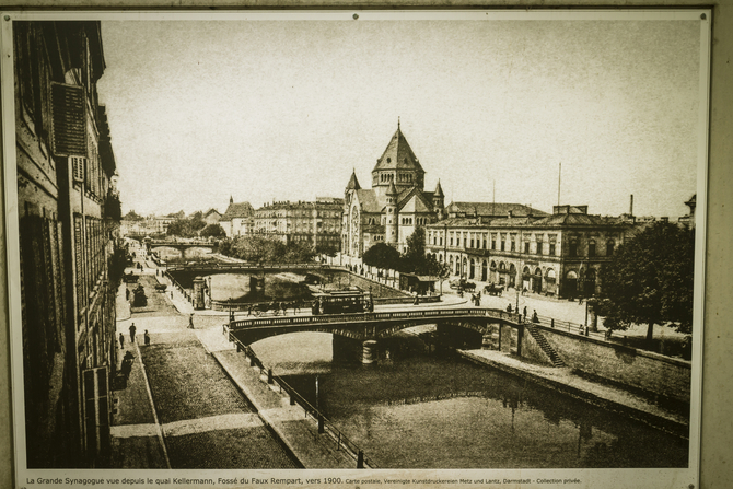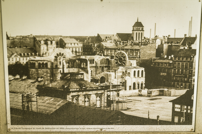 ▲ 옛 성당 유적지에 붙어있는 1941년도 스트라스부르의 성당과 도시의 모습이다. 성당은 유적지 자리만 남아 있는 상태였다. 잘 보존된 도시이면서, 또한 시간의 흐름을 따라 변한다는 것을 함께 느낄 수 있게 하는 자료이다.