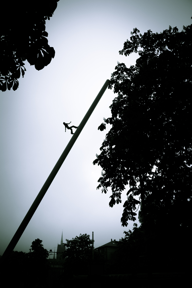 ▲ 성당 유적지 앞에 있는 하늘로 걸어 올라가는 조형물.