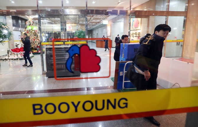 ![9일 오후 서울 중구 부영 사옥에서 압수수색을 마친 검찰 수사관들이 압수한 물품들을 들고 차량으로 향하고 있다 [사진=연합뉴스]](http://www.tfmedia.co.kr/data/photos/20180102/art_15155746950966_262938.jpg)