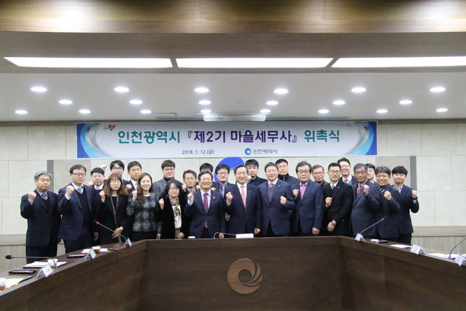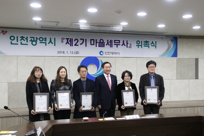 이날 유 시장은 인천시 마을세무사 66명을 대표해 신규로 위촉된 이현섭(중구), 양희모(연수구), 이병택(연수구), 김병진(연수구), 이재동(연수구), 김종석(남동구), 이철수(남동구), 이재관(부평구), 진덕수(부평구), 이경원(계양구), 신원덕(웅진군)에게 위촉장을 수여했다.