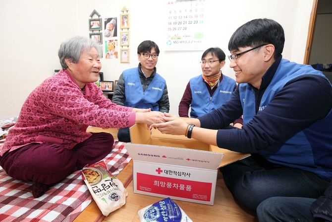 삼성전자는 지난 1일부터 14일까지 2주간 대한적십자사와 함께 전국 사회복지시설과 어려운 이웃들에게 10억원 상당의 부식품 세트를 전달했다고 13일 밝혔다.