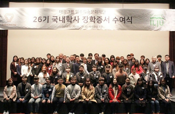 (조세금융신문=이한별 기자) 태광그룹 일주학술문화재단(이하 ‘일주재단’)은 지난 20일 서울 종로구 흥국생명 빌딩에서 2018년도 국내학사 장학생으로 선발된 60명에게 장학증서를 수여했다고 21일 밝혔다.