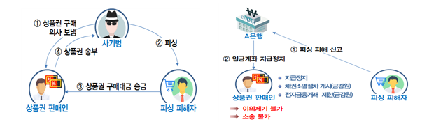 이때 피싱 피해자가 신고하면 상품권 판매인의 계좌는 정지되고, 금융당국은 채권소멸절차 개시‧전자금융거래 제한 등의 조치를 내리게 된다.