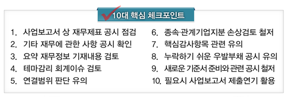 핵심감사항목과 관련해 회사가 유의해야 할 사항과 누락하기 쉬운 우발부채 공시도 유의해야 할 점검사항이다.