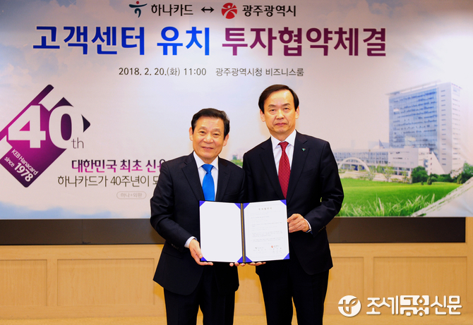 하나카드와 광주광역시의 고객센터 신설 투자 협약은 하나카드가 광주광역시의 투자기업 보조금 등 고객센터 설치에 따른 행정적 지원을 받아 약 240석 규모의 고객센터를 신규로 오픈하는 것으로 하나카드 손님에게 한 차원 높은 수준의 서비스를 제공할 예정이다.