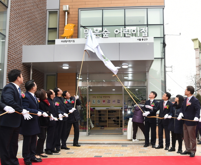 LG복지재단은 이날 서울 용산구 응봉근린공원 부지 내에 건립한 '구립 맑은숲 어린이집' 개원식을 가졌다.