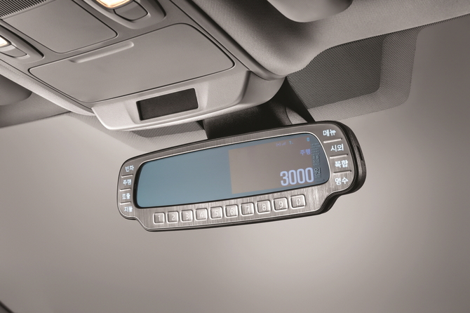 이를 통해 택시운전자에게는 더욱 깔끔하고 여유로운 실내공간을 제공할 수 있고 탑승객 또한 상단 룸미러에 표시되는 디지털신호를 통해 택시 요금을 실시간으로 보다 쉽게 확인할 수 있다.