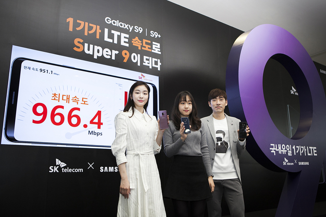 또 이 자리에서는 1Gbps급의 LTE 속도 시연도 이뤄졌다. SK텔레콤은 국내에서 유일하게 갤럭시S9로 1Gbps급 LTE 상용서비스를 제공한다. 이는 1GB짜리 영화 한 편을 8초만에 내려받을 수 있는 수준이다.