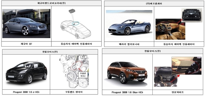 한불모터스가 들여온 푸조 3008 1.6 e-HDi 등 4개 차종 2116대는 구동벨트 텐셔너 결함으로 발전기 손상 및 배터리 방전 촉진 우려가 제기됐다. 이로 인해 구동벨트가 이탈하면서 엔진이 손상될 가능성이 확인됐다.