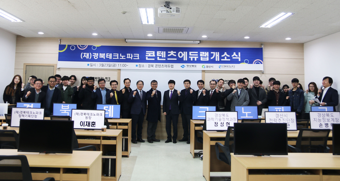 (조세금융신문=윤봉섭 기자) 경북테크노파크(이하 경북TP)는 콘텐츠 전문 인력의 교육·양성을 위해 지난 23일(금) 경북TP 글로벌벤처동에서 ‘콘텐츠 에듀 랩’의 개소식을 가졌다고 26일 밝혔다.