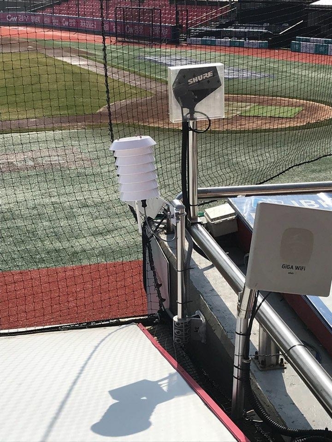 먼저 KT는 올 시즌 KT위즈의 수원 홈구장에 IoT를 이용한 미세먼지 저감 시스템을 도입했다. IoT 기반의 미세먼지 측정기를 구장 내 8곳에 설치해 실외 공기 질을 실시간으로 측정한다.