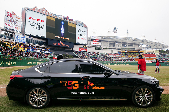 아울러 지난 24일 SK와이번스 개막전 시구에서는 자율주행차와 홀로그램 AI 아바타가 활용돼 눈길을 끌었다. 시구자가 자율주행차를 타고 이동하는 장면은 구장 내 구축된 5G망을 통해 구장 외야의 전광판으로 생중계됐고 차 안에서는 AI 아바타가 시구자에게 응원의 메시지를 전했다.