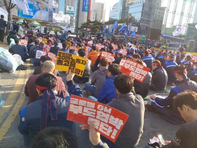 또 노조는 지난 4일 오후 인천시 부평구 한국GM 부평공장에서 고용 보장을 촉구하는 결의대회를 열기도 했다. 이들은 ‘GM 부도 협박 중단’과 ‘한국GM 30만 노동자 고용 보장’ 등 구호를 외치며 군산공장 폐쇄 철회와 미래발전전망 제시를 촉구했다.