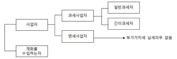 부가가치세 납세의무자는 사업자 또는 재화를 수입하는 자이다. 여기서 사업자는 과세사업자와 면세사업자로 나누어지는데, 면세사업자는 부가가치세 납세의무가 없다. 과세사업자는 일반과세자와 간이과세자로 나누어 각각 다른 방식으로 과세된다.