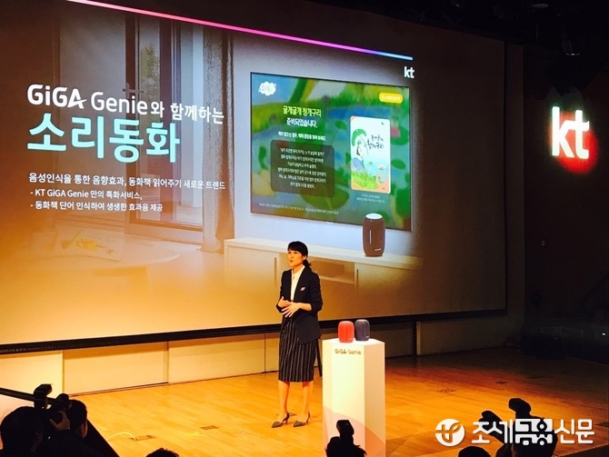 우선 KT는 기가지니의 활용성을 높이고자 키즈, 교육 등 인공지능과 연계할 수 있는 어린이용 콘텐츠를 대거 확충한다. 이를 위해 대교와 함께 국내 최초 AI 동화 서비스 ‘소리동화’, ‘오디오북’을 선보였다.
