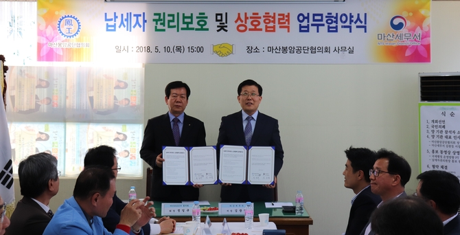 (조세금융신문=박가람 기자) 마산세무서는 마산봉암공단 입주업체의 세금문제 결과 세정홍보 지원 등 성실납세 문화 정착을 위한 상호협력을 위해 ‘납세자 권리보호와 상호협력’ 업무협약을 10일 체결했다.