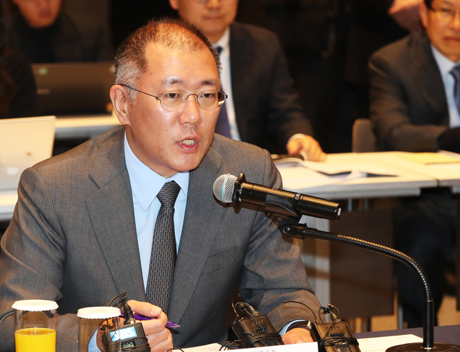 11일 현대차그룹에 따르면 정 부회장은 최근 블룸버그통신과 인터뷰를 갖고 주주 친화정책에 대해 일부 주주들 실망이 있다는 기자의 질문에 "지금까지 공개된 주주 친화책이 전부는 아니며 일회성에 그치지 않고 지속해 나가겠다는 점을 분명히 얘기할 수 있다”며 이 같이 답변했다.