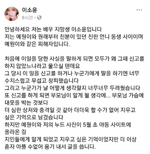 이소윤은 17일 자신의 SNS를 통해 "과거 피팅 모델로 일할 당시 한 촬영장에서 치욕을 당했다. 그들은 출입구를 봉쇄해 나를 가둬 위협했고 나의 은밀한 부위까지 만지며 희롱했다"고 폭로해 파문이 일었다.