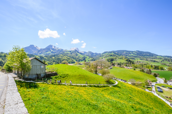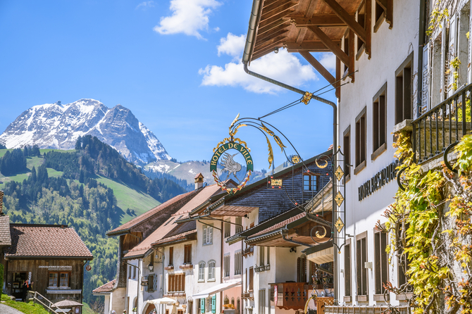 그뤼에르(Gruyère) 마을은 작은 언덕의 꼭대기에 위치하고 있고 13세기에 만들어진 그뤼에르 성 내부는 박물관으로 사용되고 있다.