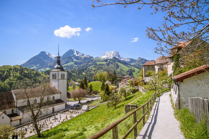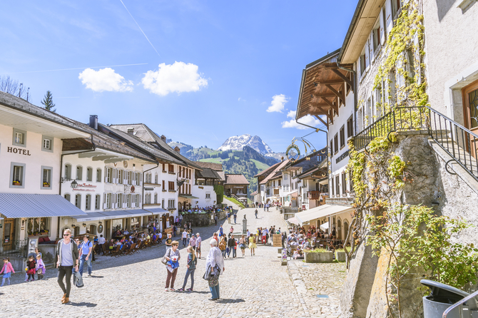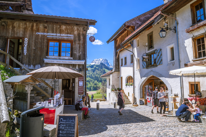 - 그뤼에르 – 작은 언덕에 위치한 그림처럼 아름다운 중세 마을로 고성이 위치하며, 수 많은 레스토랑에서는 지역 특색이 돋보이는 음식을 선보인다.