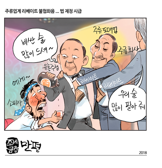 [조세금융만평]주류업계 리베이트 불협화음...法 제정 시급