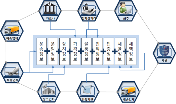 관세청에서는 급증하는 전자상거래 물품의 신속하고 효율적인 통관업무처리를 위해 블록체인을 적용한 전자상거래에 특화된 전용 통관 플랫폼 구축과 관련된 연구·개발을 진행하고 있다.