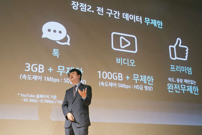 또 데이터온 요금제 출시로 데이터 사용량이 급증할 것이라는 우려에 대해서는 “경쟁사와 주로 쓰는 주파수 대역이 다르고 내년에 5G 서비스가 시작되기에 데이터 폭발에 따른 우려는 전혀 없다”며 “사용량이 폭발적으로 늘더라도 추가 시설 투자를 하면 충분히 해결할 수 있어 속도가 느려지는 일은 거의 없을 것”이라고 강조했다.