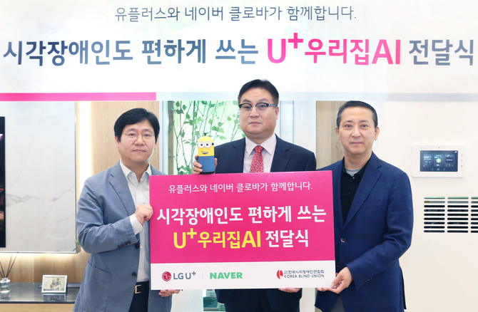 (조세금융신문=김성욱 기자) LG유플러스가 네이버와 함께 한국시각장애인연합회에 ‘U+ 우리집 AI’를 기증하는 행사를 갖고 시각장애 가정을 적극 지원하기로 했다고 31일 밝혔다.